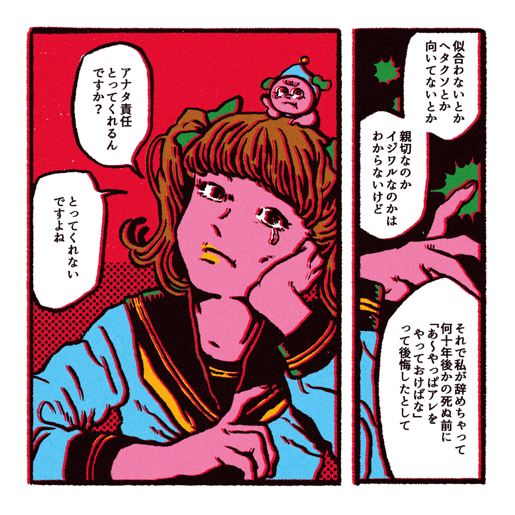 「もしも生まれてきたこと自体が嫌だったらどうしよう」とか「辛い目に遭ってしまったらどうしよう」とか「どうせ人間って死ぬのに私って何をやっているんだろう」みたいな事がグルグルと頭を巡り、命を産むということはなんと責任の重いことなのだろうと泣き散らかした。ダハハ。