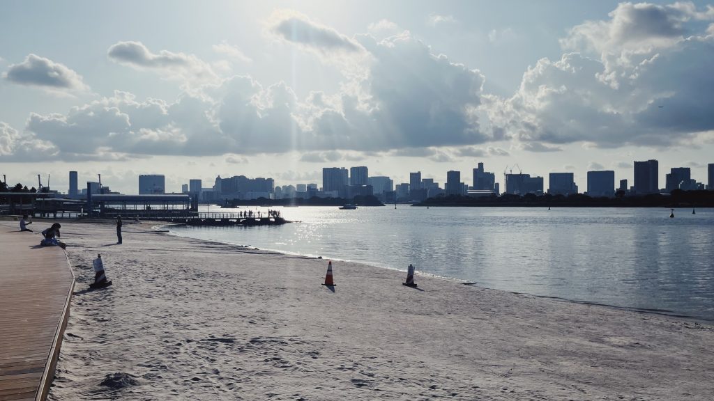 友人と海に行けそうな日を睨みつつもなかなかいい日が来ない。いよいよ海欲が爆発しそうなってきた。でも一日かかる!というか一日かけて楽しみたい!どうしたらいいんだ!と頭を抱えていると思いついた。近くの海へ行けばいいのでは?どうしてこんなことに今まで気づかなかったのだろう。半日ほど空いている日にぴょんと電車に飛び乗り、あっという間にお台場海浜公園近くの駅に着いた。